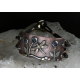 The back is etched copper and finished with Bronze and Sterling Silver bails.