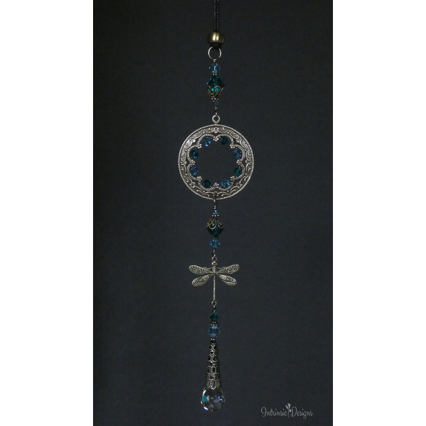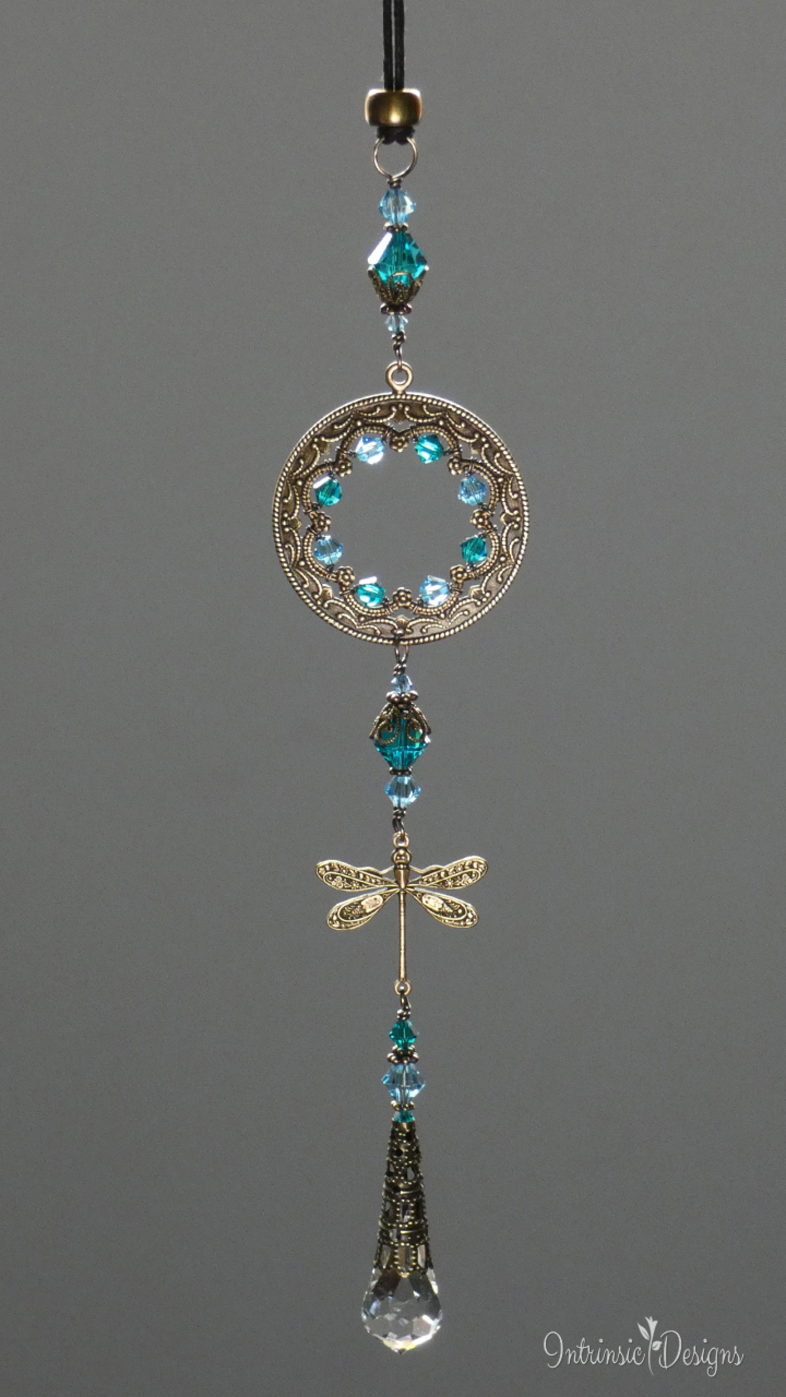 SWAROVSKI CRYSTAL WITH DRAGONFLY CAR REARVIEW MIRROR DANGLE .... ADJUSTABLE