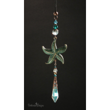 SWAROVSKI CRYSTAL AND GREEN FLUORITE WITH STARFISH CAR REAR VIEW MIRROR DANGLE .... ADJUSTABLE