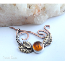 BALTIC AMBER SHAWL PIN/ SWEATER PIN WITH MIXED METALS