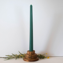 LAYERED EUCALYPTUS & PINE CANDLE HOLDER WITH A TEAL BEESWAX TAPER CANDLE