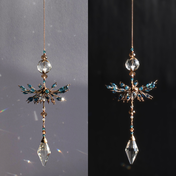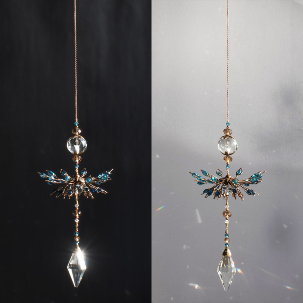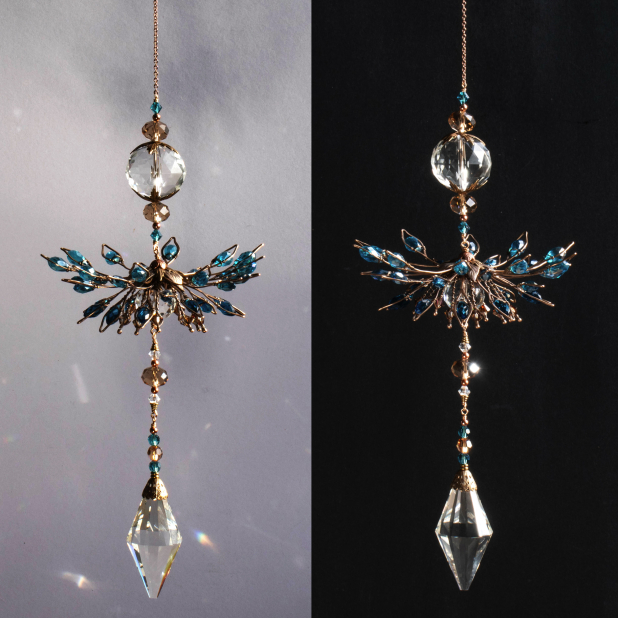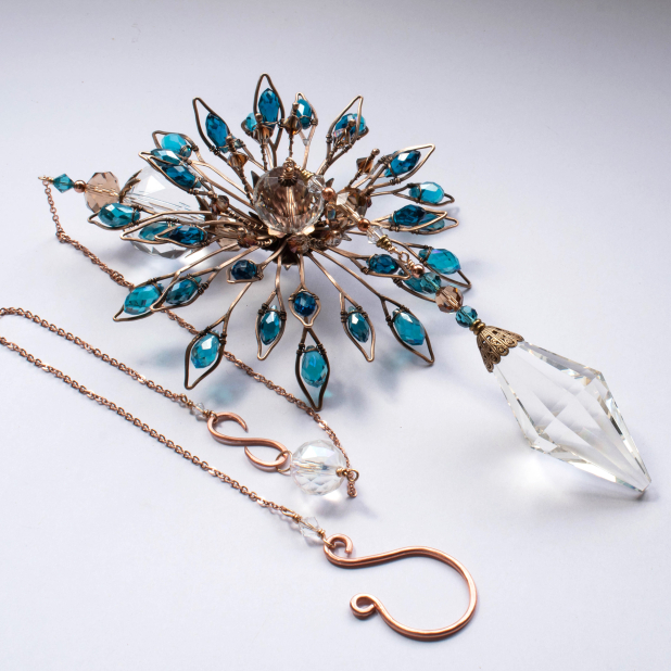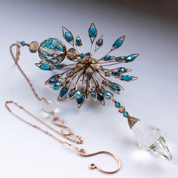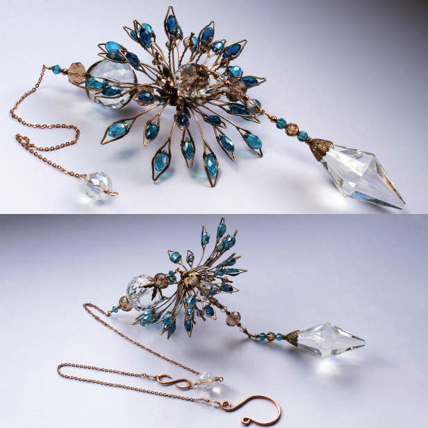 My interpretation on the beautiful Blue Nigella "Love in the Mist" flower, in a Long Suncatcher, Chandelier style.