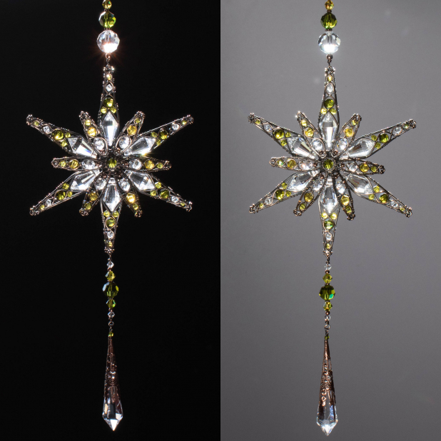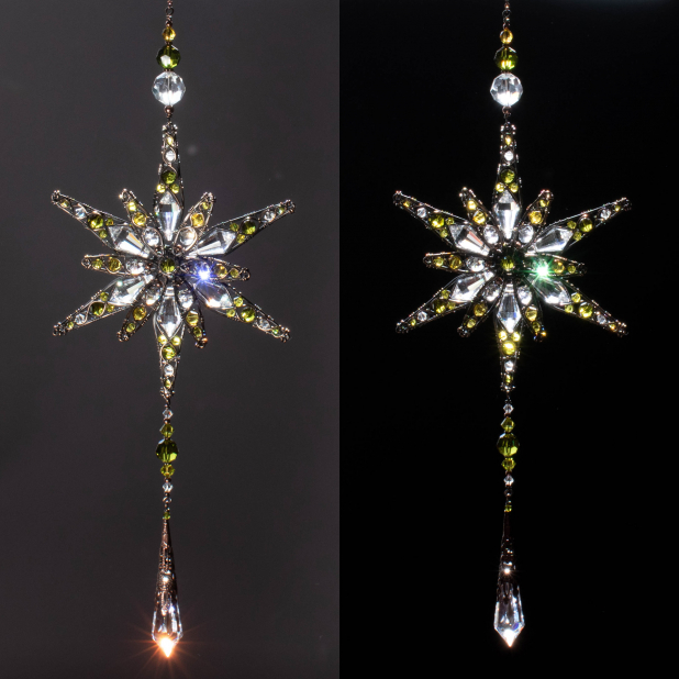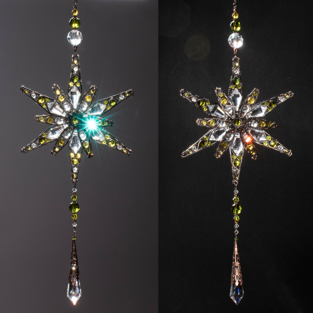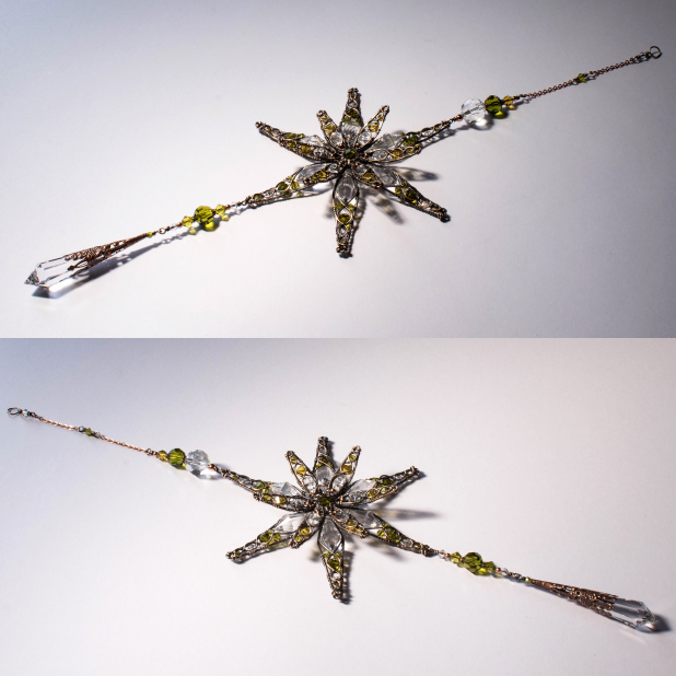 Consisting of top quality Swarovski and Preciosa Crystals in clear and varying shades of Olive.