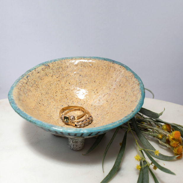 A quirky trinket dish with four little feet to keep your rings, earrings, or other small hair and jewellery items on your dresser, bedside table, kitchen sink, bathroom or wherever you might need it! *