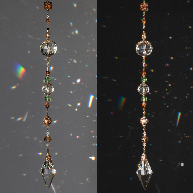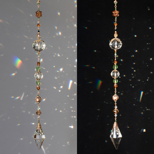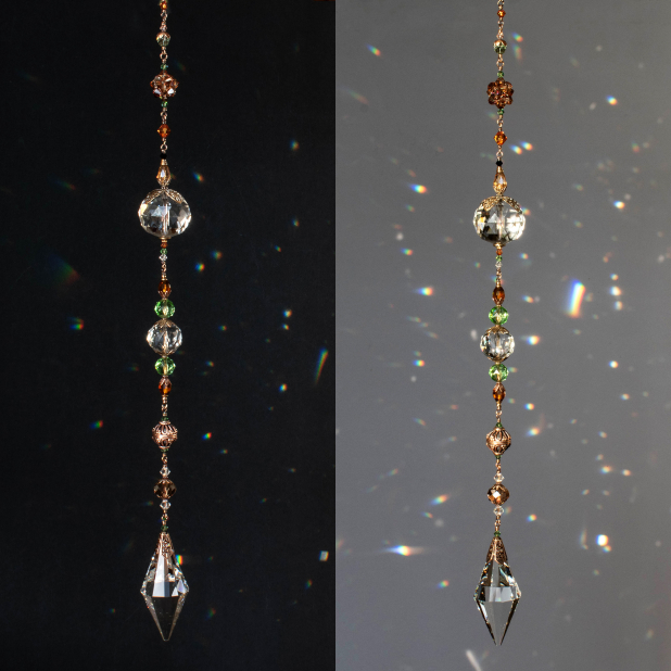 A long Crystal Suncatcher that throws magnificent rainbows when the sun's behind it!