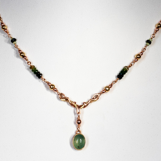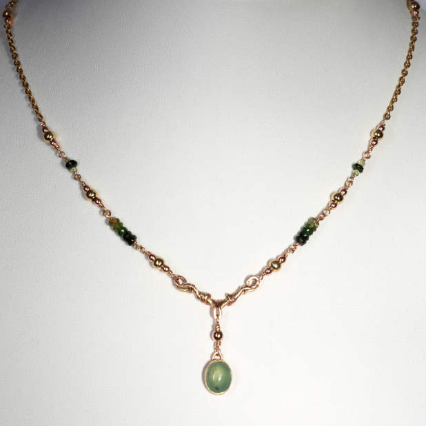 PREHNITE & TOURMALINE CHOKER NECKLACE IN MIXED METALS.