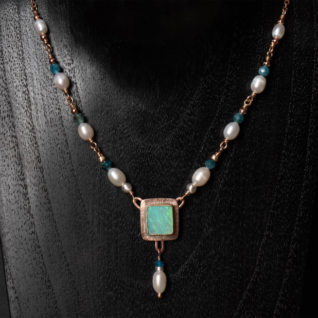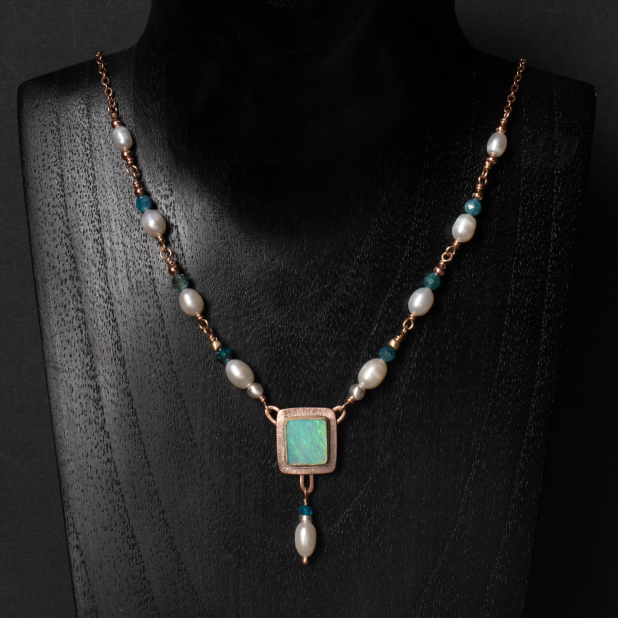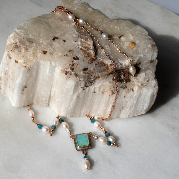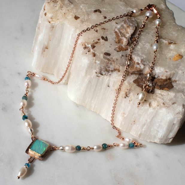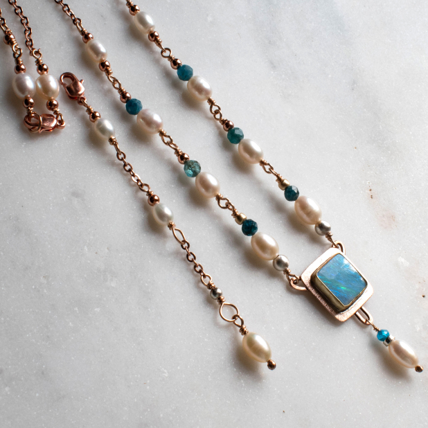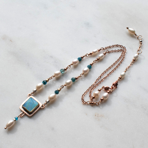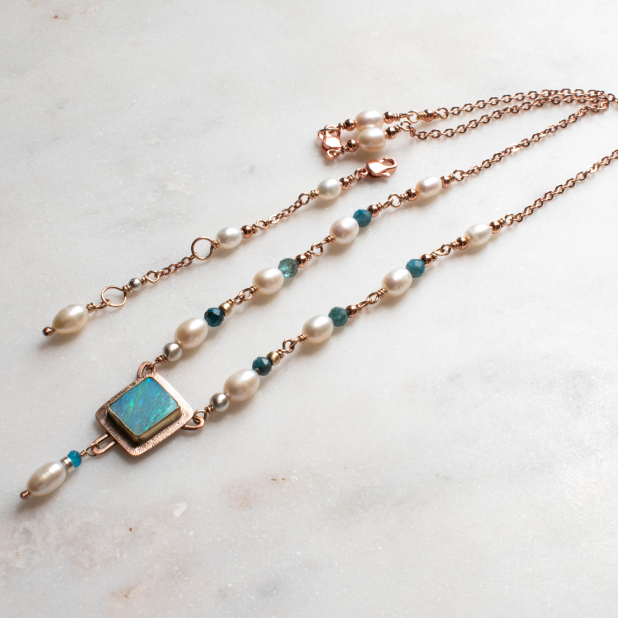 RESERVED FOR NICOLE BALANCE ... AUSTRALIAN OPAL & FRESHWATER PEARL NECKLACE WITH AN ADDED EXTENDER IN MIXED METALS.