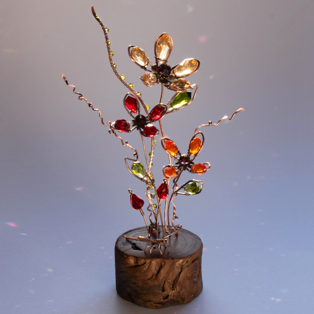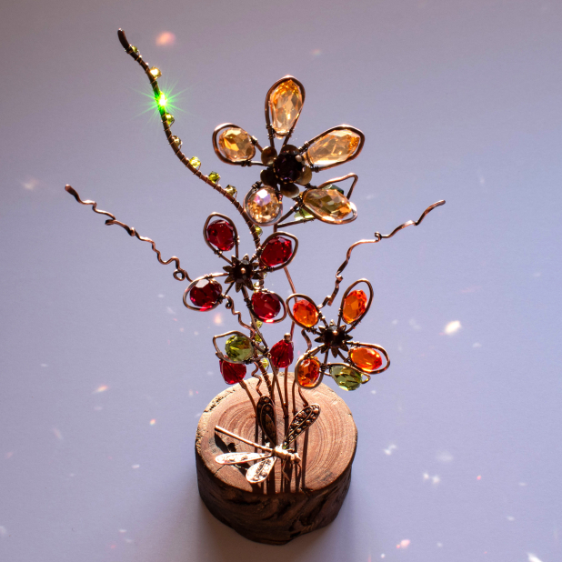 Three Crystal flowers in colours of ....
