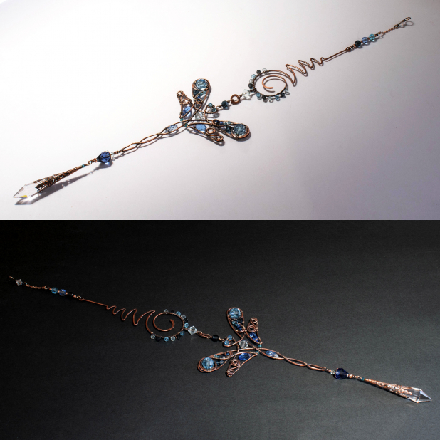Wingspan of the Dragonfly measures 9cm (3.54") wide and from the head to the tail tip is 10cm (3.93")