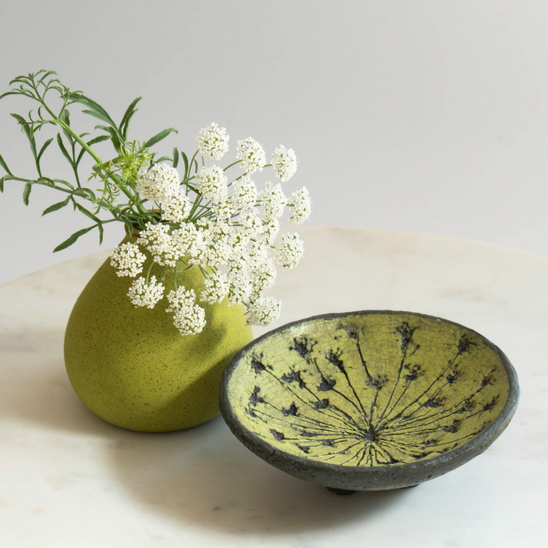 WILDFLOWER POTTERY RING DISH WITH MEADOW PARSLEY IMPRESSIONS