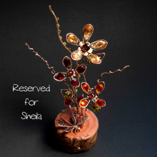 RESERVED FOR SHEILA .... FLOWERS & A DRAGONFLY ON A WOOD SLICE ... WINDOWSILL SUNCATCHER .... IKEBANA STYLE