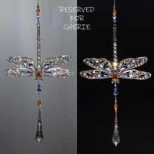 RESERVED FOR CHERIE ... DRAGONFLY FLORAL SWAROVSKI CRYSTAL WINDOW SUNCATCHER IN MIXED METALS