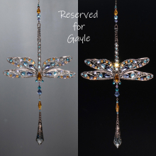 RESERVED FOR GAYLE ... DRAGONFLY FLORAL SWAROVSKI CRYSTAL WINDOW SUNCATCHER IN MIXED METALS