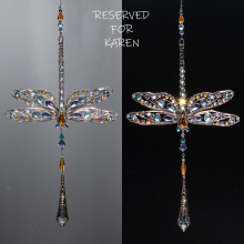 RESERVED FOR KAREN ... DRAGONFLY FLORAL SWAROVSKI CRYSTAL WINDOW SUNCATCHER IN MIXED METALS
