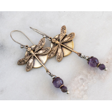 AMETHYST DRAGONFLY EARRINGS IN MIXED METALS WITH 935 ARGENTIUM SILVER EAR WIRES