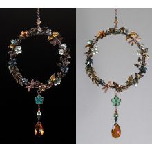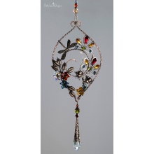 DRAGONFLY & BEE GEMSTONE WINDOW SUNCATCHER IN MIXED METALS WITH A SWAROVSKI CRYSTAL PENDANT