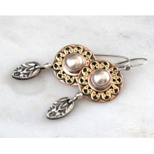 FILIGREE FRESHWATER PEARL EARRINGS IN MIXED METALS WITH 935 ARGENTIUM SILVER EAR WIRES