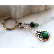 SERPENTINE, CHRYSOPHRASE AND BLACK ONYX MIXED METAL KEYRING / KEY CHARM