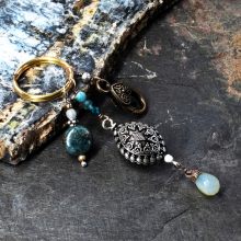 BALI BEAD AND GEMSTONE MIXED METAL KEYRING / KEY CHARM / BAG CHARM