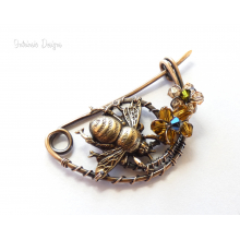 BEE SHAWL PIN/ SWEATER PIN WITH MIXED METALS AND A SWAROVSKI CRYSTAL FLOWER