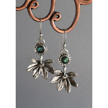 LABRADORITE FLOWER EARRINGS IN FINE SILVER WITH 935 ARGENTIUM SILVER EAR WIRES