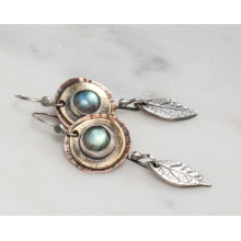 LABRADORITE LEAF EARRINGS IN MIXED METALS WITH 935 ARGENTIUM SILVER EAR WIRES