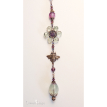 SWAROVSKI CRYSTAL, RAINBOW FLUORITE AND AMETHYST WITH BEE CAR REAR VIEW MIRROR DANGLE .... ADJUSTABLE