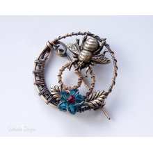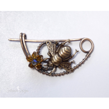 BEE SHAWL PIN/ SWEATER PIN WITH MIXED METALS AND A SWAROVSKI CRYSTAL FLOWER