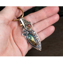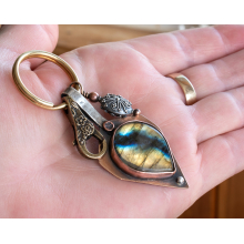 LABRADORITE MARQUISE AND STERLING SILVER FLOWER KEYRING / BAG KEY CHARM