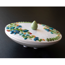 SPRING FLORAL TRINKET DISH WITH LID IN OVEN BAKED POLYMER CLAY