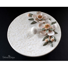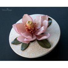 MAGNOLIA FLOWER TRINKET DISH WITH LID IN OVEN BAKED POLYMER CLAY