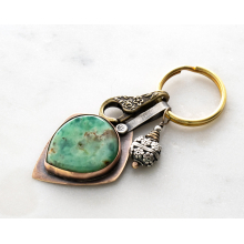 AUSTRALIAN CHRYSOPHRASE AND STERLING SILVER BALI BEAD KEYRING / BAG KEY CHARM / KEY CHARM