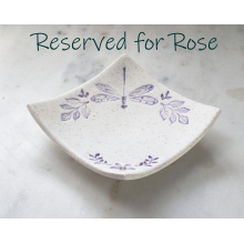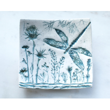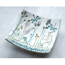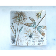 CURVED SQUARE RING DISH WITH A DRAGONFLY & WILDFLOWERS