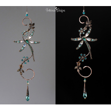 DRAGONFLY ON A BRANCH SWAROVSKI CRYSTAL WINDOW SUNCATCHER IN MIXED METALS
