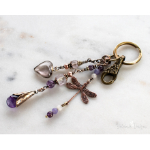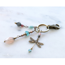 DRAGONFLY AND GEMSTONE MIXED METAL PURSE KEYRING
