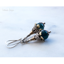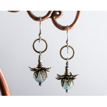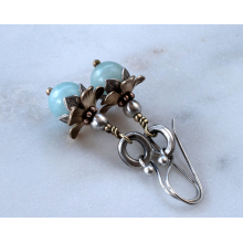 AMAZONITE FLORAL MIXED METAL EARRINGS WITH 935 ARGENTIUM SILVER EAR WIRES