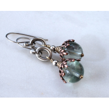 GREEN FLUORITE FILIGREE MIXED METAL EARRINGS WITH 935 ARGENTIUM SILVER EAR WIRES
