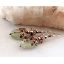PREHNITE AND MELODY STONE DRAGONFLY EARRINGS WITH 935 ARGENTIUM SILVER EAR WIRES