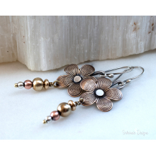 FLORAL MIXED METAL EARRINGS WITH 935 ARGENTIUM SILVER EAR WIRES