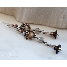 SMOKEY QUARTZ AND LUCITE FLORAL MIXED METAL EARRINGS WITH 935 ARGENTIUM SILVER EAR WIRES