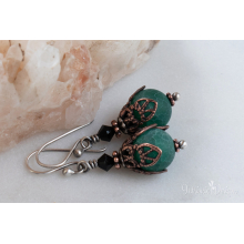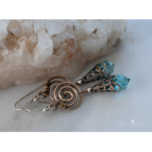 CRACKED MATTE AGATE & SWAROVSKI CRYSTAL COPPER FILIGREE & STERLING SILVER EARRINGS