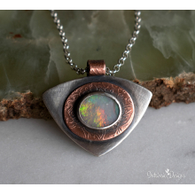 SOLID BLACK OPAL STERLING SILVER AND MIXED METAL PENDANT NECKLACE