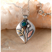 BLACK OPAL FLORAL STERLING SILVER AND MIXED METAL PENDANT NECKLACE