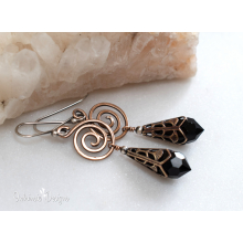BLACK SWAROVSKI CRYSTAL FILIGREE EARRINGS IN MIXED METALS WITH STERLING SILVER EAR WIRES