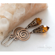 TOPAZ SWAROVSKI CRYSTAL FILIGREE EARRINGS IN MIXED METALS WITH STERLING SILVER EAR WIRES