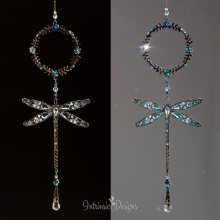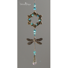 OCEAN BLUE SWAROVSKI CRYSTAL AND DRAGONFLY WINDOW SUNCATCHER WITH FLORAL FRAME