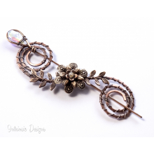 SPIRAL COPPER SHAWL PIN/ SWEATER PIN WITH SWAROVSKI CRYSTAL AND MIXED METALS