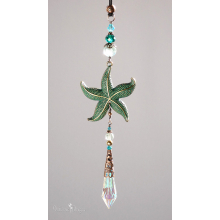 SWAROVSKI CRYSTAL AND GREEN FLUORITE WITH STARFISH CAR REAR VIEW MIRROR DANGLE .... ADJUSTABLE