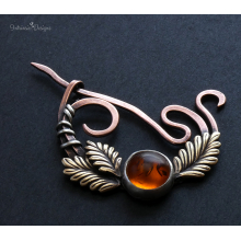 BALTIC AMBER SHAWL PIN/ SWEATER PIN WITH MIXED METALS
