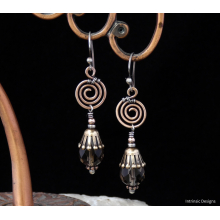 SMOKEY QUARTZ MIXED METAL EARRINGS